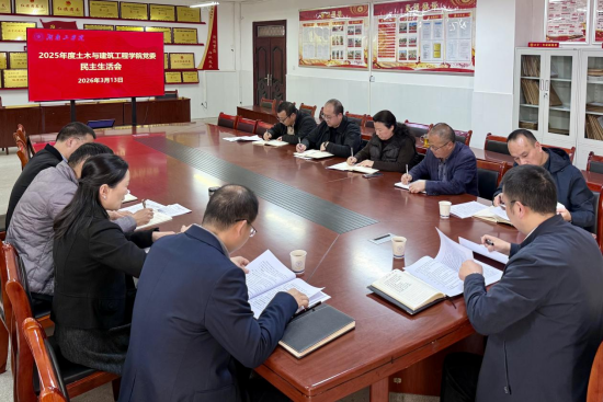 3月13日下午,土木与建筑工程学院召开党委领导班子2025年度民主生活会。校党委委员、副校长罗建新,教学质量监控与评估处处长陈健,纪委委员、智机学院党委书记刘斌到会指导。学院党委书记黄卫华主持会议,党委领导班子全体成员参加会议,院长游春华列席会议。