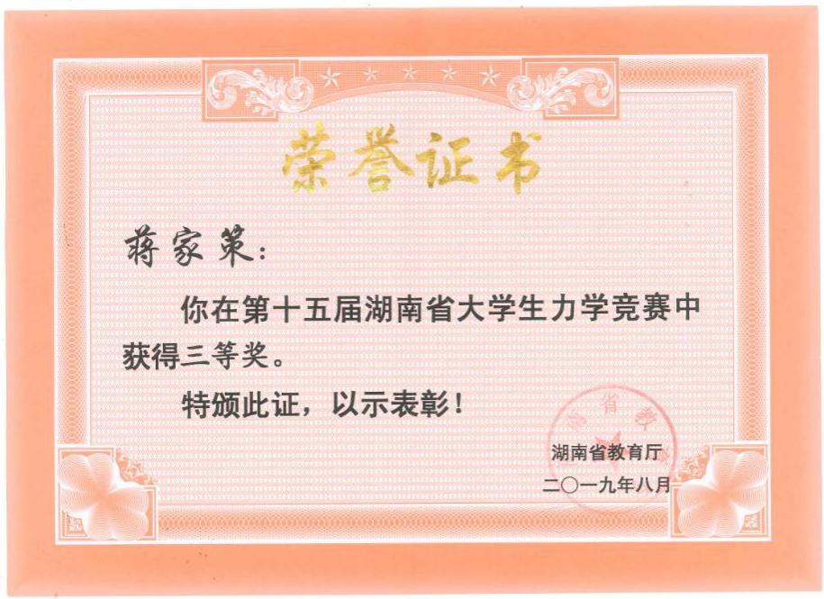 湖南省第十五届力学竞赛