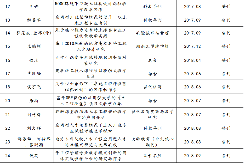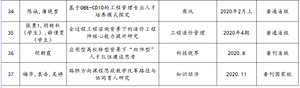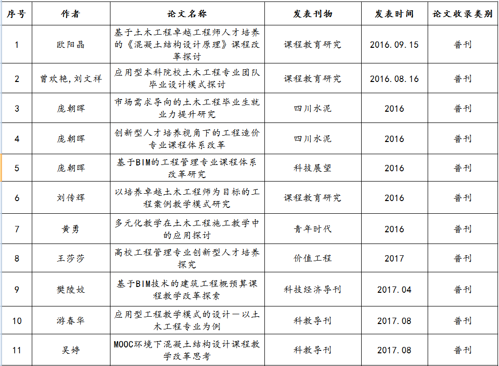 土木与建筑工程学院教师发表教研论文一览表(至2020年)