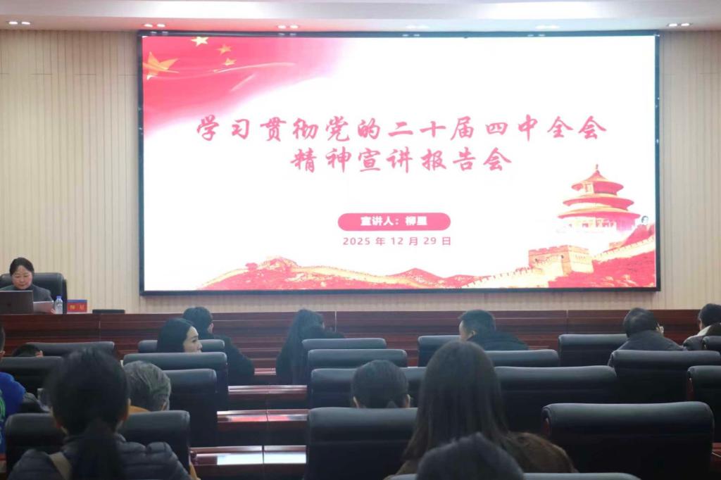 12月29日下午,副校长柳星在船山报告厅为国际合作交流处、智慧校园建设与管理中心、图书馆、语言与文化学院全体教职工,作党的二十届四中全会精神专题宣讲。