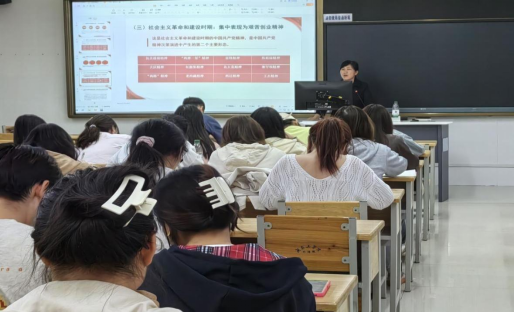 安工学院党委副书记周丹以《传承红色基因,学思践悟中国共产党人精神谱系》为题进行讲授。她指出在新时代,入党积极分子应深入学习贯彻习近平文化思想,传承红色基因、赓续红色血脉,增强志气、骨气、底气,自信自强、踔厉奋发。