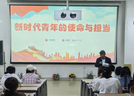 理学院党委书记刘璟忠以《新时代青年的使命与担当》为题,阐述了新时代青年应该如何珍惜时光、担负使命、成长成才,为实现中华民族伟大复兴的中国梦贡献力量。