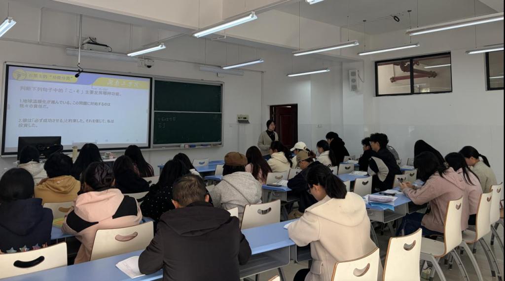 霍辉英老师在《日语泛读1》课程中,基于雨课堂的预习反馈精准把握学情,依托原版语料为学生搭建真实语境,将抽象的“こそあど”指示代词用法融入文化背景中进行阐释,使学生不仅理解语言形式,更领悟其文化意蕴。