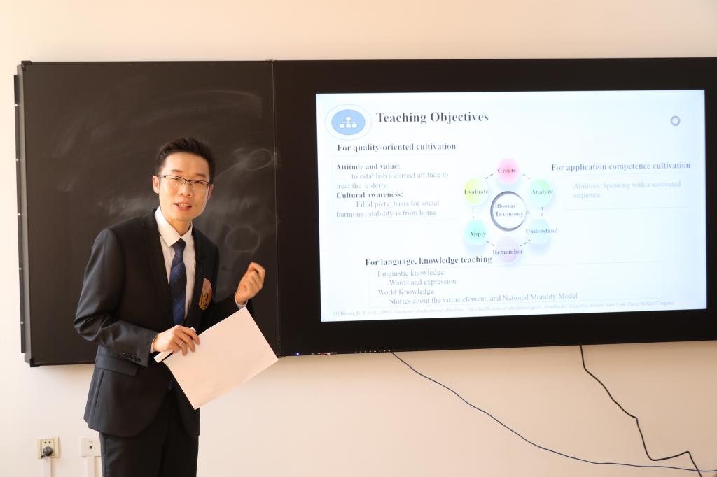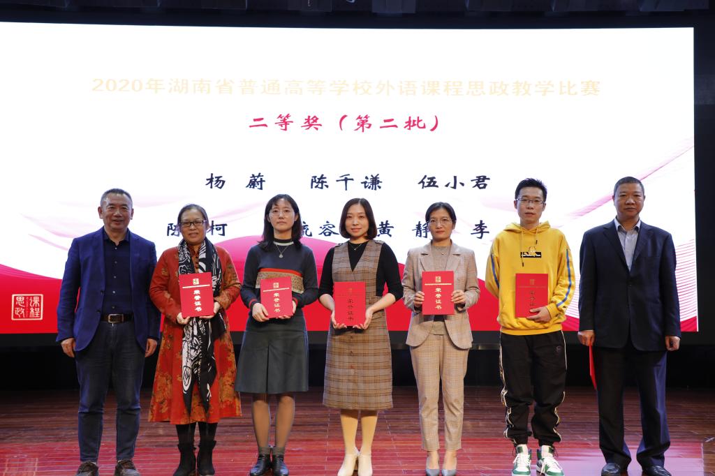 本次大赛是贯彻落实中共中央办公厅、国务院办公厅《关于深化新时代学校思想政治理论课改革创新的若干意见》、教育部关于印发《高等学校课程思政建设指导纲要》通知精神的重要举措,旨在推进思政教育贯穿于外语教学,实现“三全育人”,构建外语课程思政教育的新格局。经过初赛,全省高校共有101件作品进入复赛。专家评审后,最终40个教学团队(个人)进入决赛。beat365官网教师陈柯在决赛现场比赛环节(英语专业组)成绩第三,最终所带领的团队(成员:谢争艳、黄丹、易欣华、亓萌)获二等奖 。