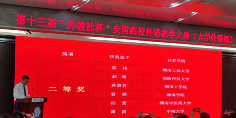 6月17日至19日,第十三届“外教社杯”全国高校外语教学大赛(大学外语组)湖南赛区比赛在长沙理工大学举行,beat365官网外国语学院教师蒋慧芳荣获大学日语组二等奖,谭樱樱荣获英语视听说组三等奖,胡艳秋荣获大学英语组三等奖。本次大赛由湖南省普通高校外国语言文学类专业教学指导委员会主办,湖南省高教学会大学外语专业委员会、日语专业委员会协办,长沙理工大学外国语学院联合上海外语教育出版社承办。