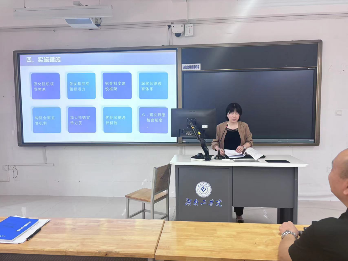 会上,党委副书记周艳红领学了《关于进一步压实师德师风建设主体责任落实的实施方案》。她详细解读了方案的指导思想、基本原则、工作目标及实施措施,强调了师德师风建设对于提升教育质量、培养高素质人才的重要性。周艳红指出,师德师风是教师职业的灵魂,是评价教师队伍素质的第一标准,全体教职工要深入学习领会文件精神,切实将师德师风建设贯穿于教育教学全过程。