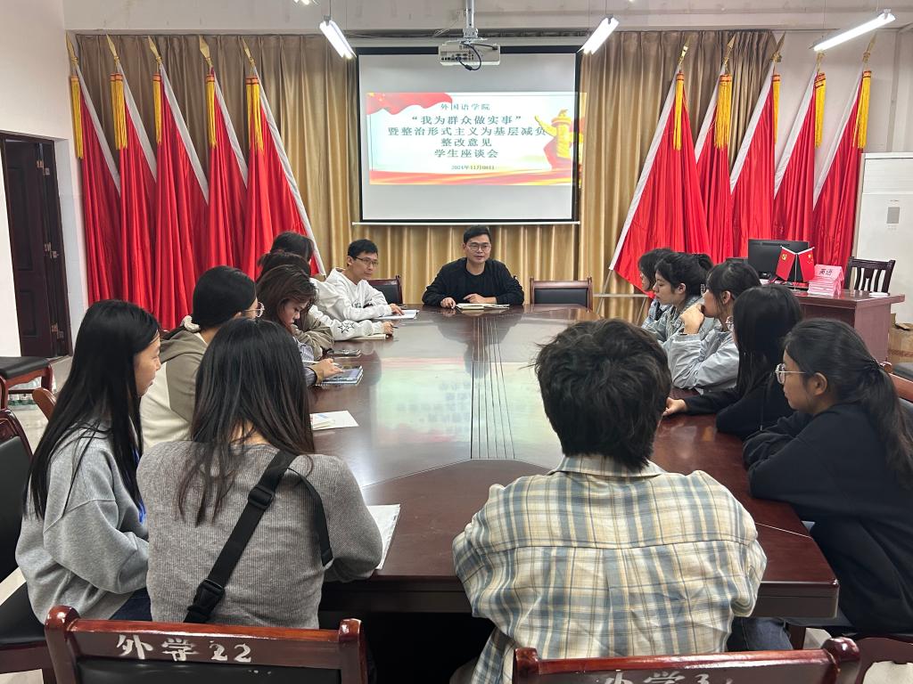 本次座谈会是学院进一步整治形式主义,推进“我为群众办实事”的重要举措学院也将以此次座谈会为契机,持续坚持以学生为本的理念,为学生的成长成才提供良好的学习、生活环境。(图文/外国语学院 一审/蒋蔚 二审/胡忠龙 三审/刘斌