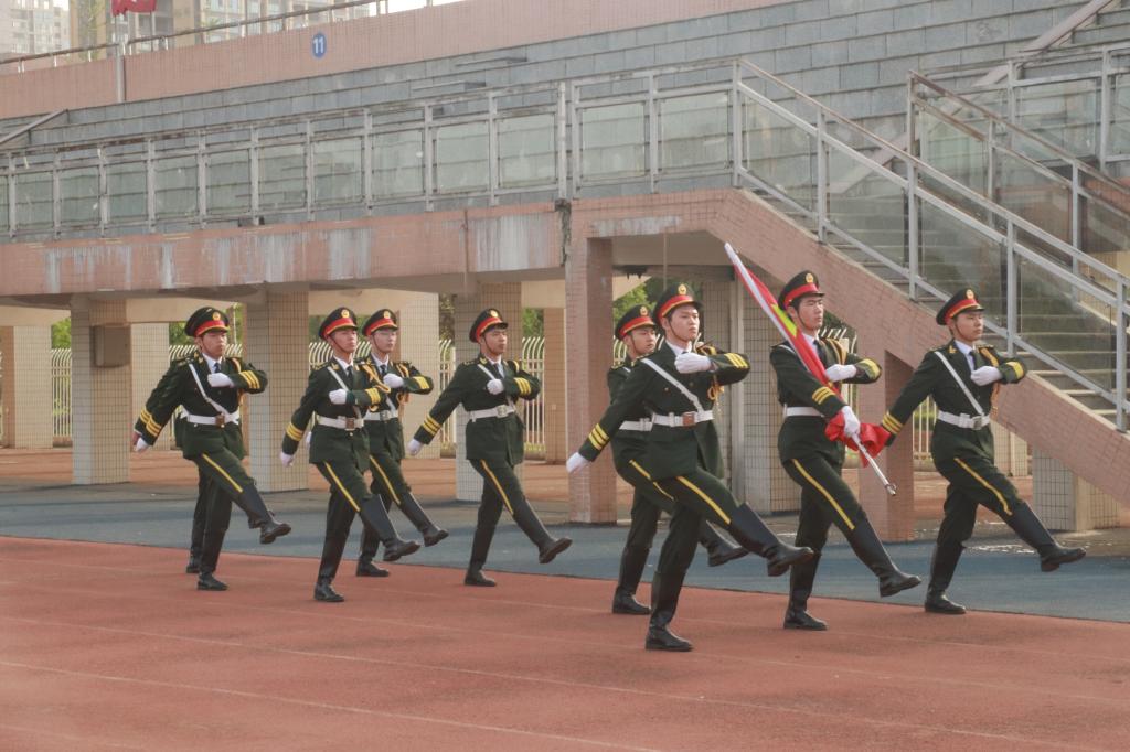 英语2403班肖婕作为学生代表在国旗下发言。她表示,爱国爱校,始于勤学,成于务实;奋斗青春,贵在圆融,志在卓越。站在建校50周年时间节点上,青年惟有以勤学为舟,以务实为桨,以圆融为帆,以卓越为灯塔,才能在时代的浪潮中乘风破浪,为母校的明天增光添彩,为祖国的未来贡献青春力量。