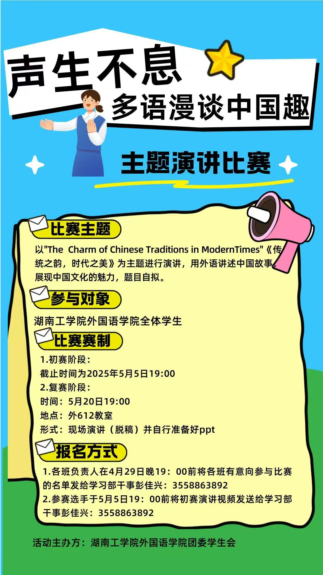 本次“声生不息,多语漫谈中国趣”演讲比赛是学院专业品牌活动之一,它成功地将思政教育、专业实践与文化传播融为一体。活动不仅锻炼了学生的语言应用与跨文化交际能力,更极大地激发了他们的民族自豪感与家国情怀,为培养具有“中国心、世界眼”的高素质外语人才奠定了坚实基础。图文/语言与文化学院 一审/蒋蔚 二审/胡忠龙 三审/蒋志刚