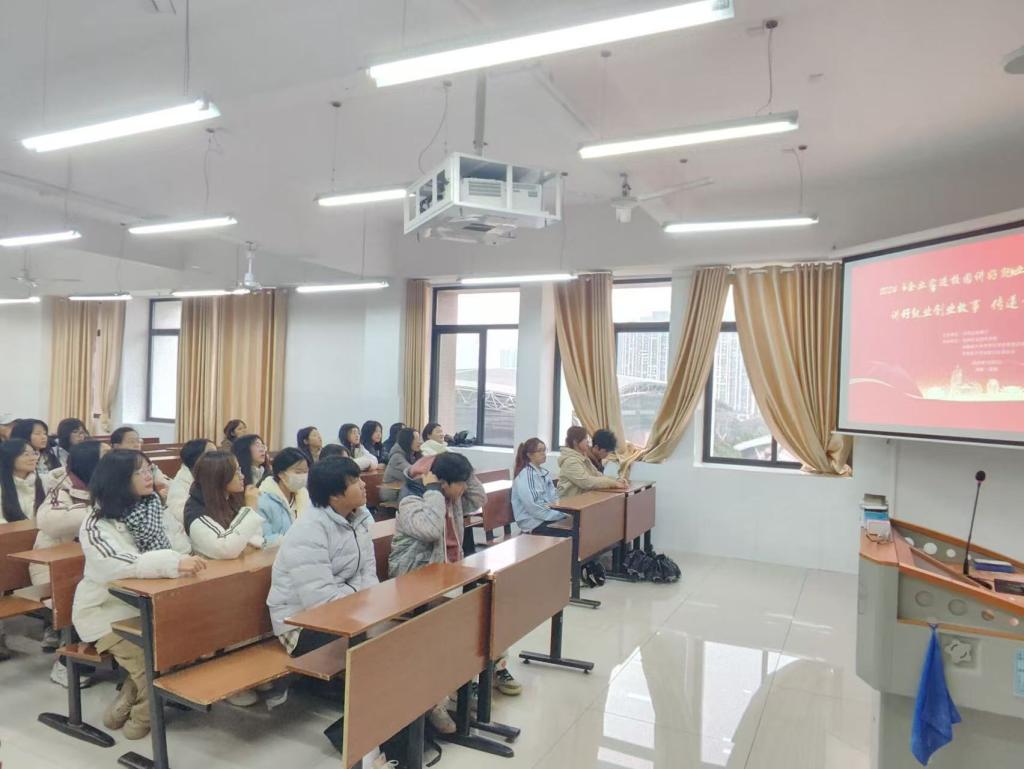 为深入贯彻党的二十届三中全会精神,并紧密跟随省委关于大学生创业的“七个一”行动计划,beat365正版唯一官网必一外国语学院于2024年12月5日下午,组织全院师生观看了省级“企业家进校园讲好就业创业故事”系列活动的第三场直播。此次活动旨在进一步激发大学生的创新创业热情,深入落实国家关于大学生就业创业的政策导向,并特别响应了省委沈晓明书记的号召。