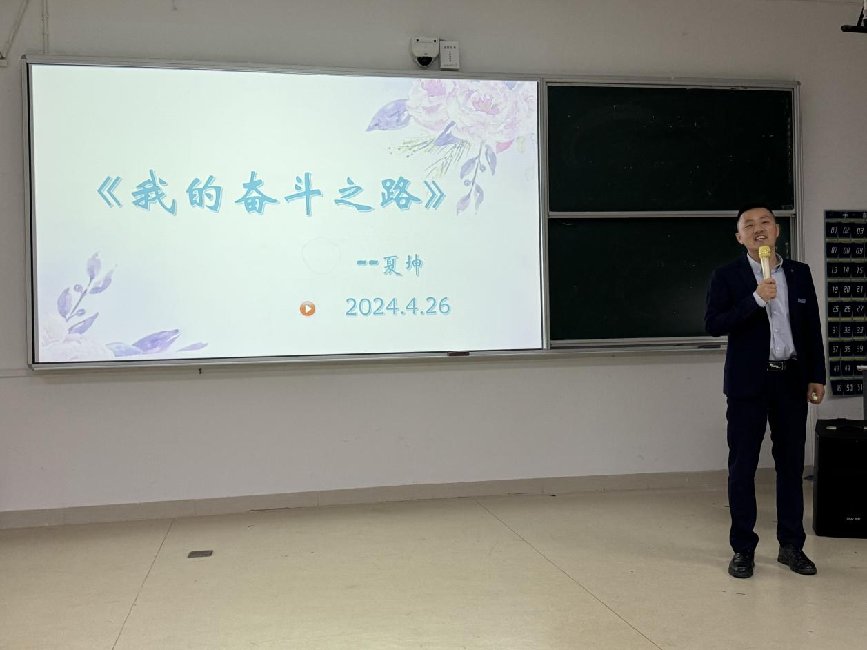 夏坤以自身的经历为引,阐述自己的学生生涯、创业生涯上所面临的诸多困难,并通过努力逐一克服。同时他还鼓励学弟学妹努力学习专业知识,打破固定思维,培养国际视野,多读书,读好书,坚持终身学习,以谋求未来更好的发展。他表达了对母校栽培的感激之情,并始终将“勤学、务实、圆融、卓越”的校训精神融入工作当中,努力发展壮大事业。