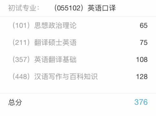 以上就是我从初试的心路历程和经验了,感谢大家看到这里,希望能帮助到你们。现在已经是四月了,相信大家已经完成择校这一步了,亦或者还在犹豫徘徊,关于这一点,我还有一些想说的话。现在MTI已经成为了一个越来越热门的专业,这也就使得这里的竞争也越来越激烈,所以正确的选择也显得尤为重要。努力需要建立在正确的选择之上,这样才能离成功更进一步。择校,切忌好高骛远,也不要妄自菲薄。大家在网上多看看经验贴,多对比自身和博主的情况,选择一条最好也是最适合自己的一条路。最后,送给大家一句话,这句话也曾支撑我从初试走到复试。