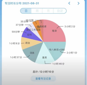 7~8暑假期间,至关重要。我当时是留校学习,也没啥干扰,所以学习效率还是能够保证的,基本上每天学习时长是9-12小时,也有少数几天效率出奇的高,冲上12小时哈哈。这个时间段每天会做的事情差不多是固定的。如图