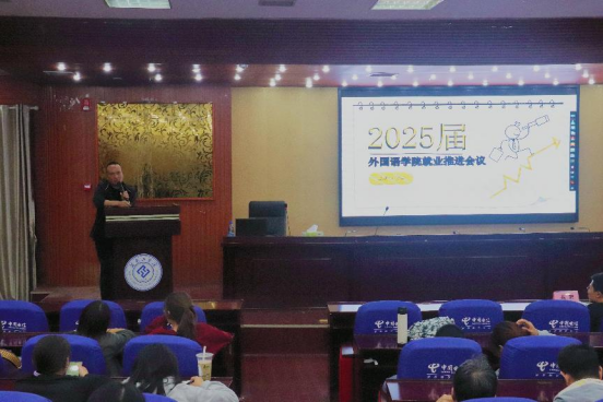 进一步推进学院就业工作,117日晚,外国语学院在蔡伦报告厅召开2025届毕业生就业工作动员大会。外国语学院党委书记刘斌、学工办主任蒋蔚、全体辅导员和2025届全体毕业生参加大会。会议由就业专干彭方凯主持。