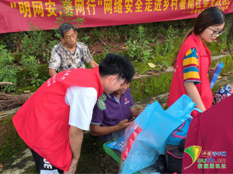 图为实践团成员走访调研并向当地村民科普网络安全知识