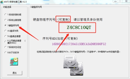 (11)硬盘序列号:下载软件(附件3),运行可查,如图;
