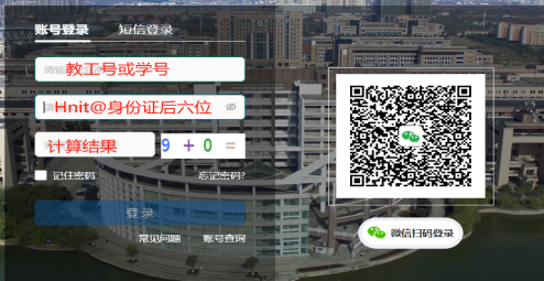 提示:初始密码为Hnit@身份证后6位,修改过密码的用户使用修改后密码登录。