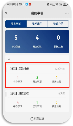 在“【流程】后勤报修”中可查看各种状态下收到的报修工单,
