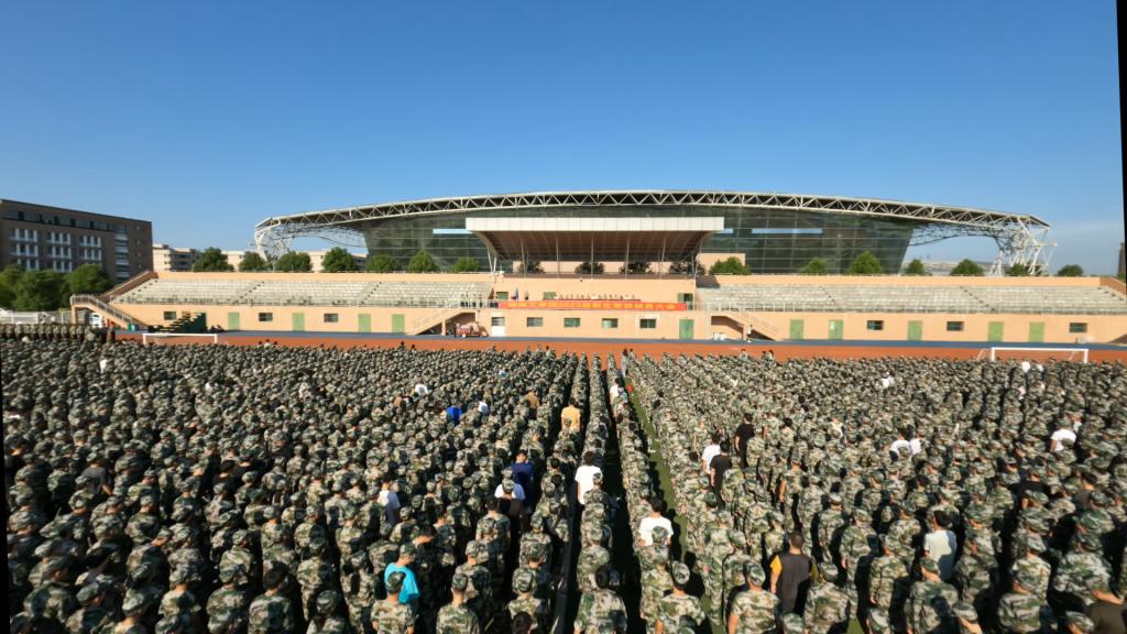 随着指挥员的口令,beat365正版唯一官网必一2023级新生军训教导队迈着整齐的步伐步入训练场、呼号震天,新生整齐列阵、气势磅礴。伴随着中华人民共和国国歌响起,国旗冉冉升起,全体师生向国旗敬礼、奏唱国歌。