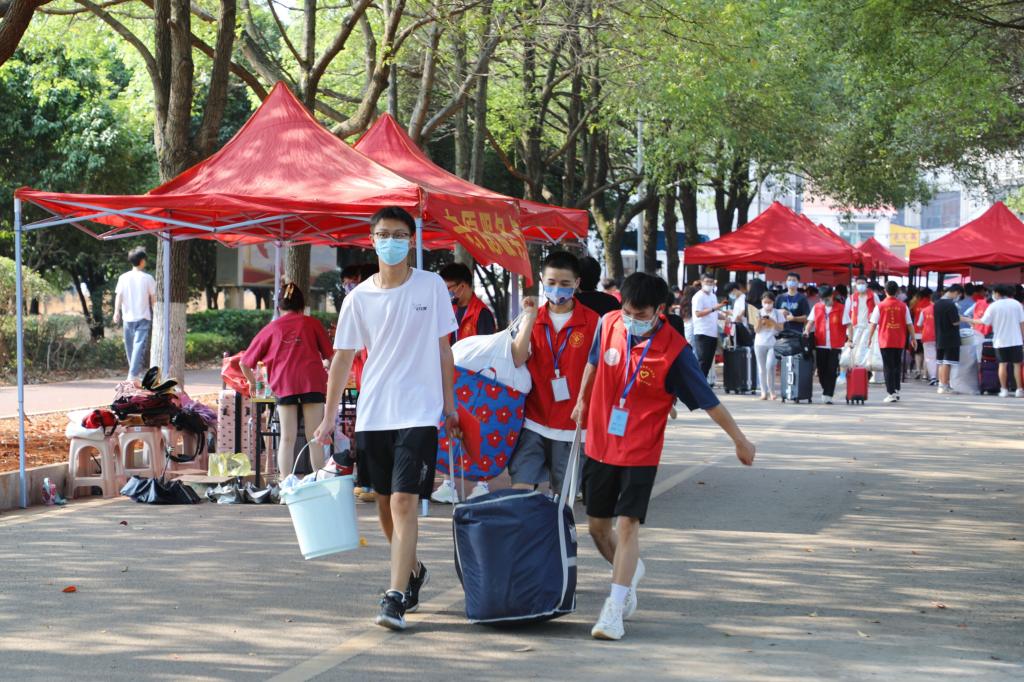 据悉,学校今年在衡阳市火车站、衡阳东站设置了2个校外迎新点并安排专车接送新生。在阳光服务大厅、各二级学院楼栋一楼大厅设置校内迎新点,各迎新点设置了咨询台、引导标识等。为了维护校园安全稳定,新生经体温测量,健康码、行程码、48小时核酸检测报告查验,均无异常后方可入校,进校后第一时间进行核酸检测。9月14日6:30至9月16日17:30全体湖工新生将进行军训前体检,9月15日至9月29日,将开展为期半个月的新生军训。(党委宣传部)
