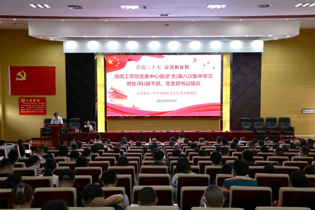 8月30日下午,学校在500人报告厅举行党委理论学习中心组(扩大)2022年第八次集中学习暨处(科)级干部、党支部书记培训,专题学习今年7月26日习近平总书记在省部级主要领导干部专题研讨班重要讲话精神和《习近平谈治国理政》第四卷。本次集中学习培训特邀请到中共湖南省委党校、湖南行政学院唐月娥教授作专题辅导报告。校党委书记宋克慧主持学习。全体校领导、副科级以上干部、党支部书记、马克思主义学院全体教师、全体辅导员和学生代表300余人参加。