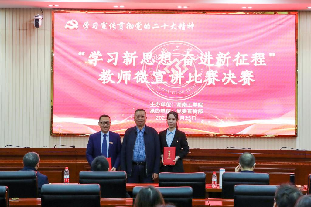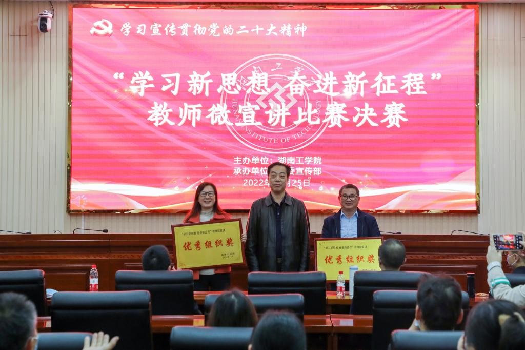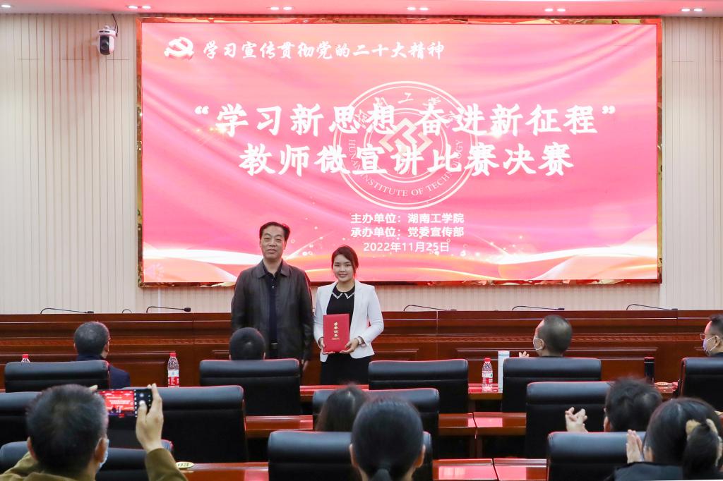 11月25日,beat365官网在教学大楼船山报告厅举办“学习新思想 奋进新征程”教师微宣讲决赛,推动全校师生深入学习贯彻党的二十大精神走深走实。校党委书记宋克慧,党委委员、副校长、宣传部、统战部部长刘龙昌出席活动并为获奖选手颁奖。