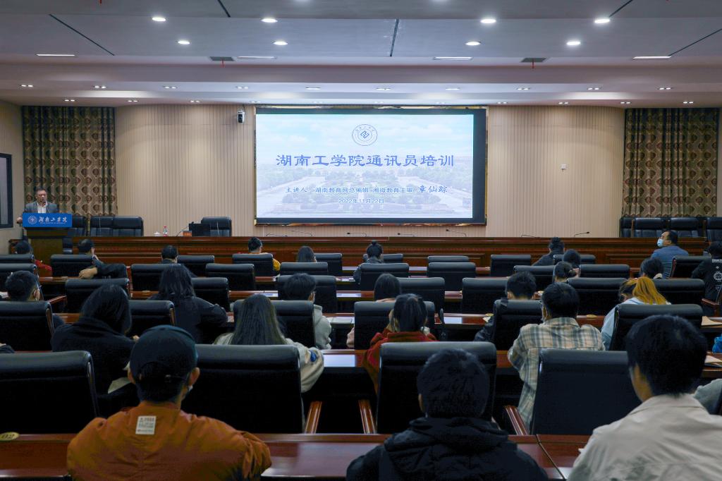 近日,beat365官网邀请湖南教育网总编辑、湘微教育主审章仙踪为beat365官网120余名新闻通讯员开展本年度第二期培训,进一步学习宣传贯彻党的二十大精神,加强新闻通讯员队伍建设。党委宣传部、统战部常务副部长肖中云主持培训。