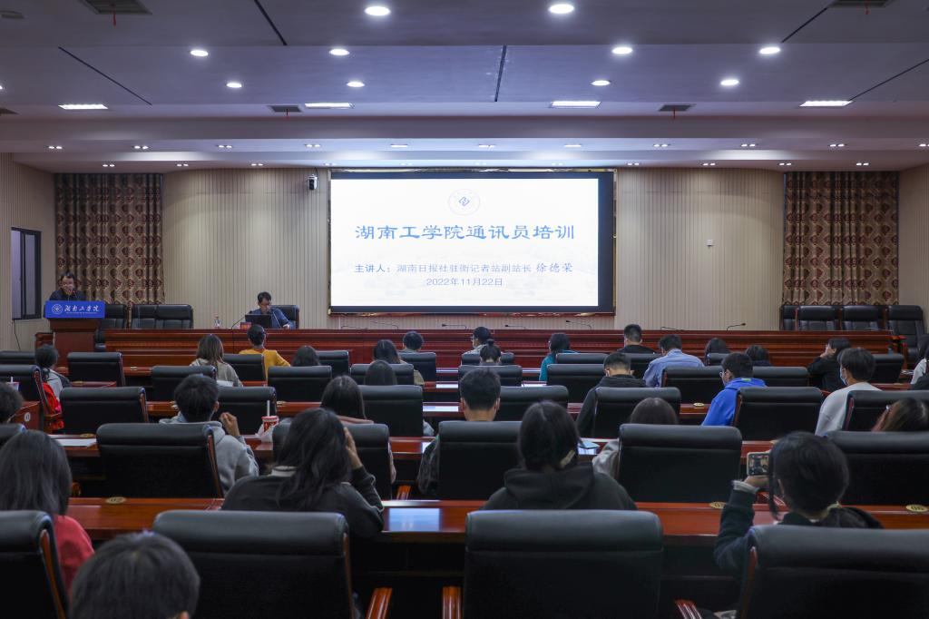 11月22日下午,为深入学习宣传贯彻党的二十大精神,加强新闻宣传工作,beat365官网邀请湖南日报社驻衡记者站副站长徐德荣为全校共120余名新闻通讯社员开展第一期培训。培训由党委宣传部副部长彭国柱主持。