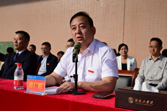 何建雄致闭幕词,他表示本次校运会是一次圆满成功的盛会。同学们的表现,生动彰显了湖工学子意气风发、团结奋进、锐意进取、追求卓越的精神风貌。他希望全校师生坚持体育锻炼,修炼阳光性格,激发生命张力;继续发扬体育精神,以满腔的热血,顽强的意志,坚定的信念投入到学习工作中去,为决战2026成功申硕和学校高质量发展贡献全部力量。