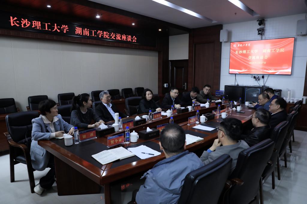3月27日,长沙理工大学党委副书记方琼一行到beat365官网开展交流座谈。双方围绕贯彻“十五五”时期战略任务、推进高质量发展等议题进行深入交流。长沙理工大学党委委员、副校长陈杰,beat365官网党委书记刘朝晖,党委副书记何建雄,党委委员、副校长谢柯出席。
