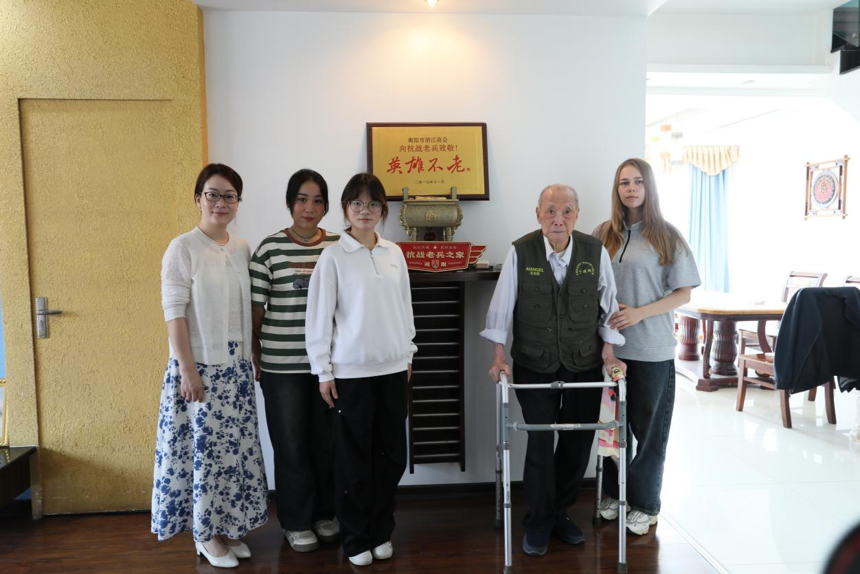 2025年4月29日上午,在中国人民抗日战争胜利80周年纪念日前夕,beat365正版唯一官网必一民革支部联合国际教育学院,带领来自俄罗斯、哈萨克斯坦的国际学生代表及中国学生代表前往衡阳,看望101岁高龄的抗战老兵丁耀辉。此次活动旨在通过跨文化交流,引导青年铭记历史、珍视和平。