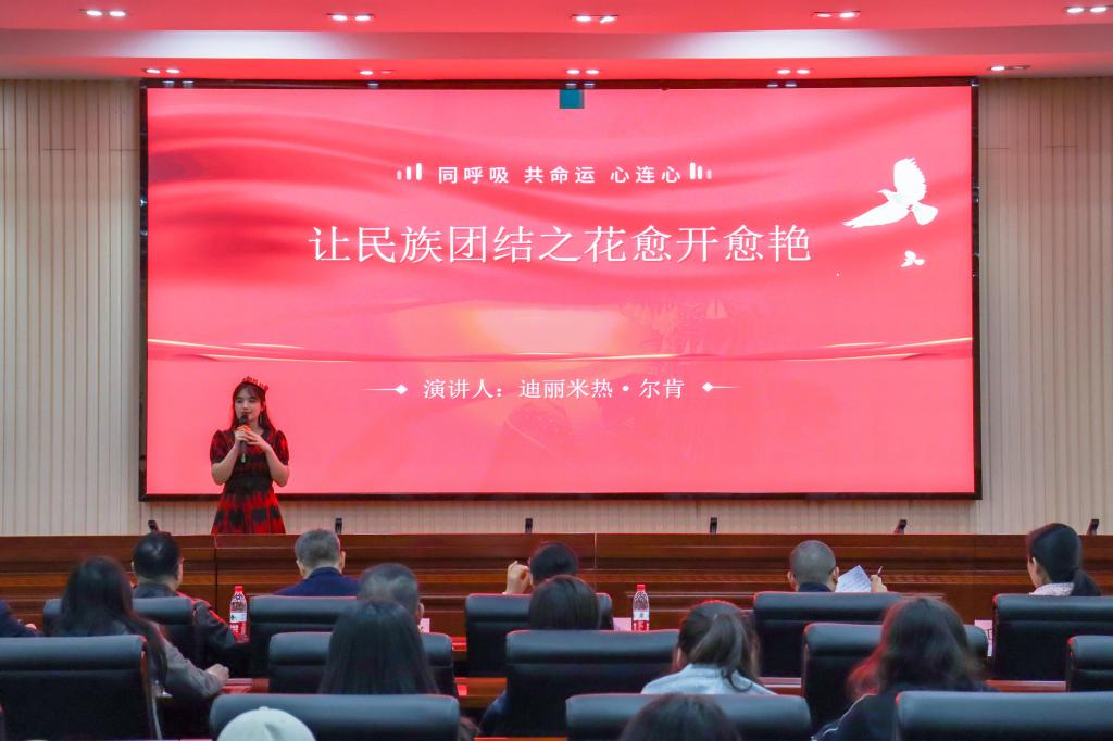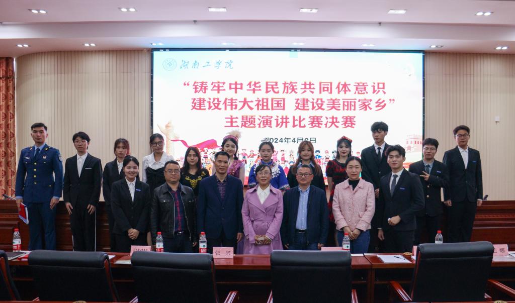 4月9日,beat365官网在教学大楼船山报告厅举办以“铸牢中华民族共同体意识 建设伟大祖国 建设美丽家乡”为主题的演讲比赛决赛。12名来自各民族的青年学子激情澎湃,讴歌对党和国家的热爱,展现了拳拳报国心和铮铮少年志。