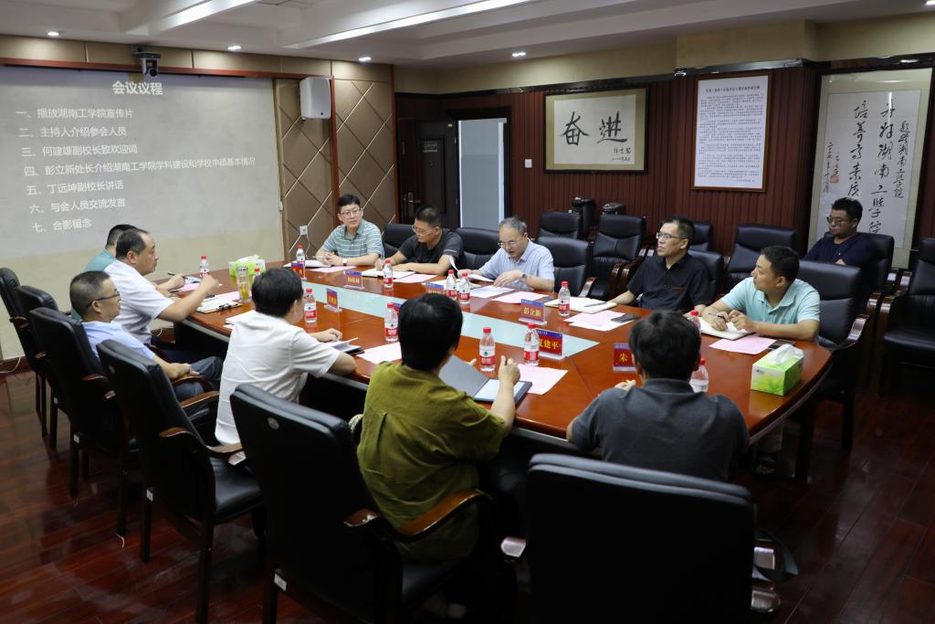 7月20日上午,湖北工程学院副校长丁远坤一行来访,双方在教学大楼11楼会议室展开交流讨论。学校党委委员、副校长何建雄出席会议,学科建设与发展规划处处长彭立新主持会议。
