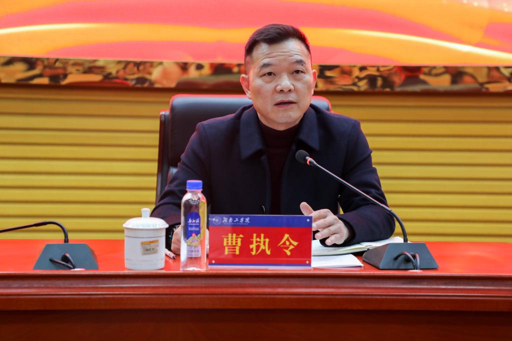 曹执令传达了2025年全省教育大会、全省教育工作会议精神。他指出全省教育大会的召开,为建设教育强省指明了前进方向,具有很强的政治性、针对性、指导性,为我们明晰了前行方向,勾勒出宏伟蓝图。我们要深入学习领会习近平总书记关于教育的重要论述和在全国教育大会上的重要讲话精神,牢牢把握教育的政治属性、人民属性、战略属性,深刻理解学校面临三个根本没有改变,精准对标全省教育大会的任务要求,一体化推进教育发展、科技创新和人才培养,不断推动学校高质量发展。