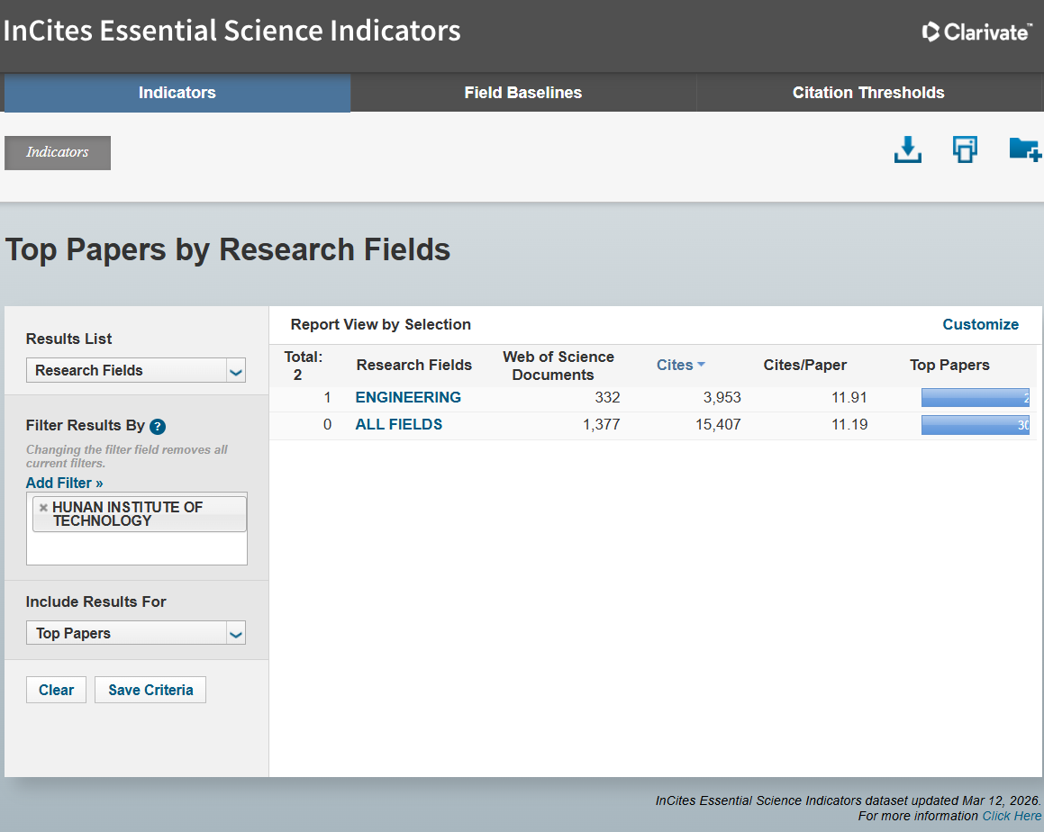 ESI作为基于Web of Science(SCIE/SSCI)所收录的全球12000多种学术期刊文献记录而建立的计量分析数据库,是目前世界范围内普遍用以评价高校、学术机构学术水平及影响力的重要评价指标工具。最新数据显示,全球共有2982个机构入围工程学学科排名,beat365官网位列第2945名,共发表工程学SCIE/SSCI论文332篇,总被引用3953次,篇均被引11.91次,其中高被引论文2篇。这一成绩的取得,是学校长期以来坚持内涵发展、优化布局、深化学科交叉融合的结果,彰显了学校在工程学学科领域的学术竞争力与影响力。