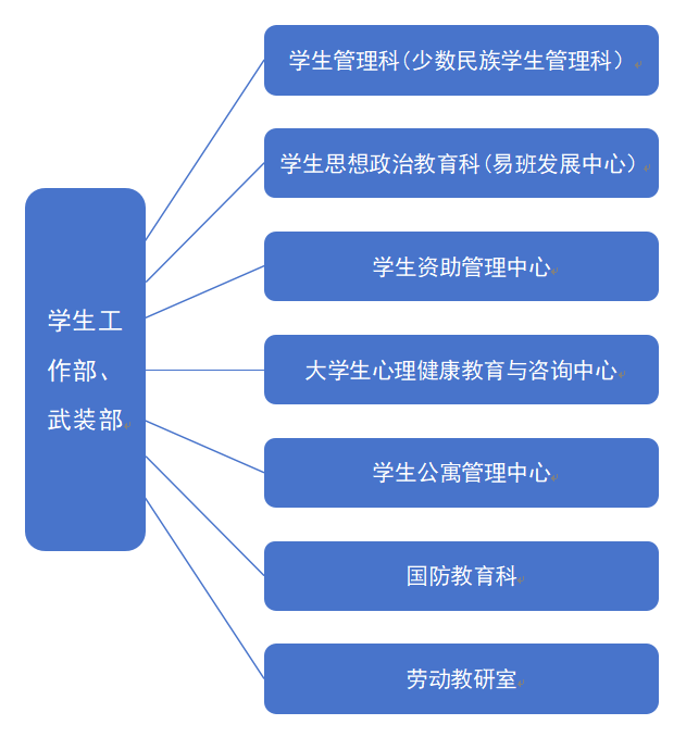 学生工作部、武装部是在学校党委和行政的领导下,行使有关学生教育、管理和服务工作职责的职能部门,紧紧围绕立德树人中心环节,坚持“人本、责任、阳光、廉洁、和谐、卓越”的服务理念,坚持育人为本、德育为先,以班级建设、学风建设、宿风建设为三大着力点,负责学校全日制本科学生的思想政治教育和事务管理服务工作,开展学生全面培养工作的综合性部门。
