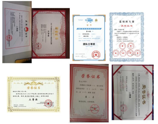 在校期间获得湖南省2021团队程序设计天梯赛团队三等奖、3届蓝桥杯全国软件和信技术专业人オ大赛-个人赛省赛二等奖、全国大学生传智杯三等奖、中国大学生计算机设计大赛二等奖、湖南省大学生计算机作品赛三等奖、beat365正版唯一官网必一第十四届计算机科技文化节软件设计大赛二等奖、beat365正版唯一官网必一校运会女子1500二等奖、beat365正版唯一官网必一互联网+三等奖、湖南省数字媒体大赛省二等奖、流星沙杯物流设计大赛省三等奖。
