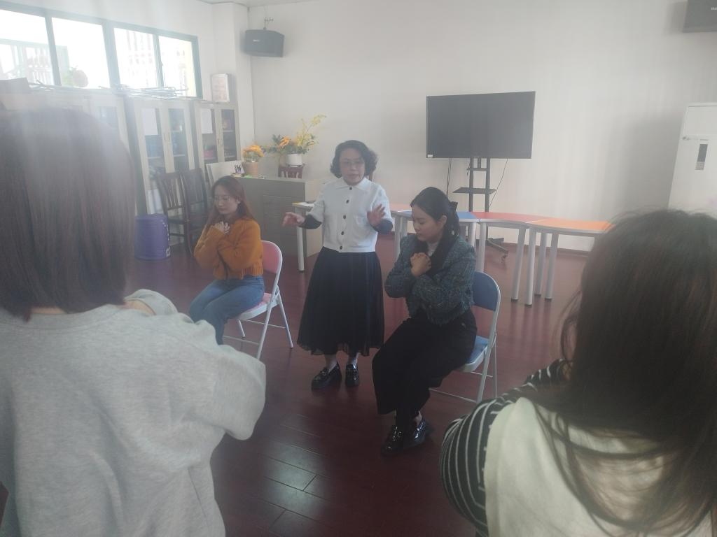 接下来,中心专职教师陈一文带领老师们开展团体辅导活动,陈老师通过“滚雪球”的形式,让老师们在轻松愉悦的氛围中熟悉彼此,通过“情绪稳定法”,让老师们亲身体验感受情绪稳定的有效操作技巧。