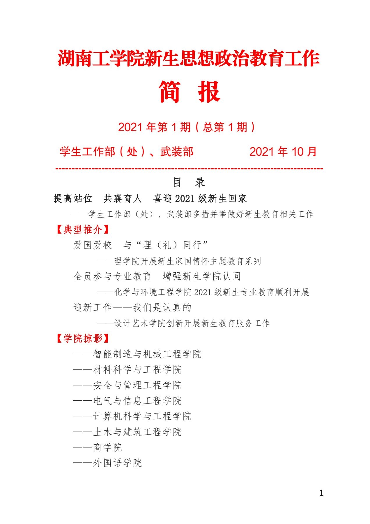 beat365正版唯一官网必一2021年学生思想政治教育工作简报(2021年第1期)