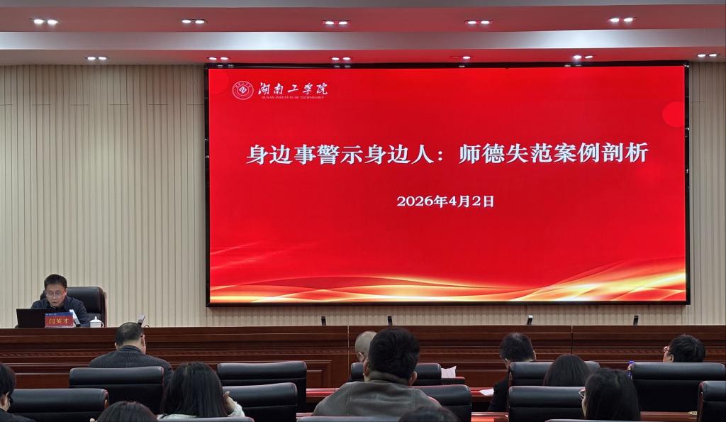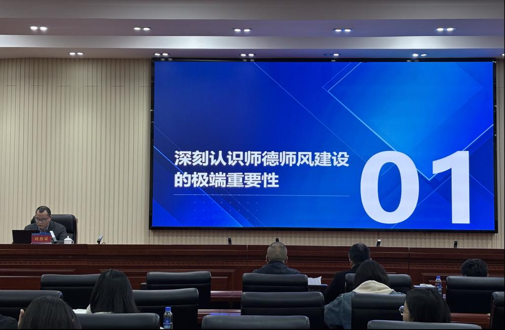 4月2日下午,学生工作部于船山报告厅开展高校辅导员师德师风建设专题培训,学工部全体人员、各二级学院副书记、学工办主任及全体专职辅导员参加培训。