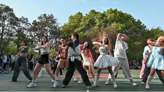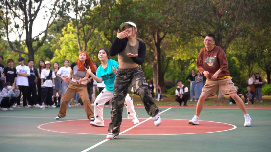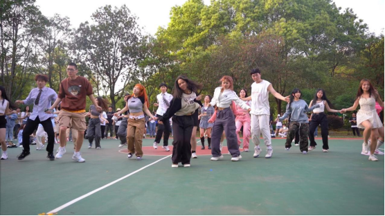为丰富校园文化生活,展现青年学生青春活力,4月15日下午三点,beat365官网体育舞蹈协会与街舞社联合举办的校园随机舞蹈活动在美食街旁瑞幸咖啡前篮球场举行。