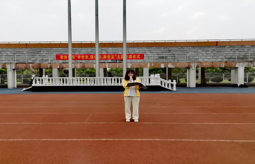 伴随着雄壮激昂的《义勇军进行曲》,五星红旗冉冉升起,全体师生注目行礼。学生代表黄馨仪同学在国旗下进行了《不忘初心跟党走》主题演讲,她带领大家回顾了党的光辉历程,号召同学们弘扬党的优良传统,用奋斗书写青春画卷。
