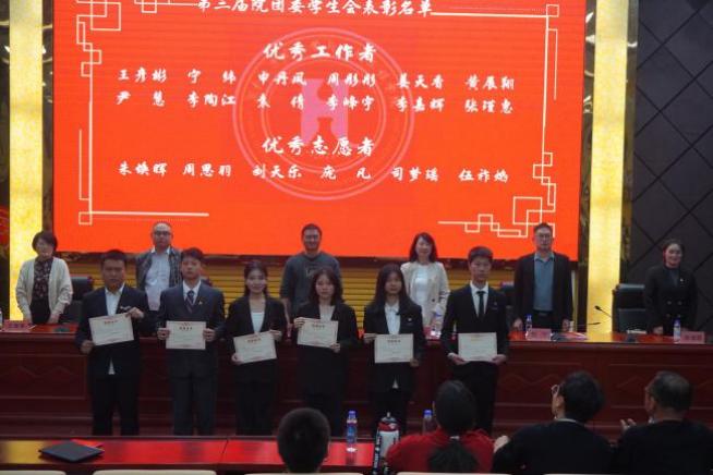 在一同观看化环学院省级“三下乡”示范团队beat365正版唯一官网必一“共护诗画万丈田,同筑百年乡村梦”赴湖南省永州市江永县暑期社会实践团的宣传视频后,台上领导老师为受表彰的团体及个人颁发了荣誉证书。