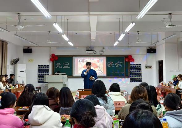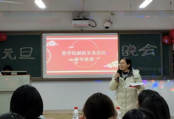 晚会伊始,朱纪红老师发表新年致辞。朱院长指出,当前大学生就业、考研、考公形势严峻,在此背景下,希望同学们在大学里早做规划,做到“三走”,走出寝室,拓展视野;走出课堂,投身实践;走出校园,拥抱社会。鼓励同学们踊跃参加创新创业比赛以及各类学科竞赛,在竞赛中充分将所学理论知识转化为实际能力,做到“三早”,即早做规划、早点动手、早出成绩。朱院长还满怀期待地展望了新的一年,激励会员们在全新征程中积极进取,持续提升自我,鼓励俱乐部多组织标志性活动为专业建设赋能,多与其他俱乐部沟通交流,互学互鉴共同成长,多出标志性、高水平成果。最后,朱院长诚挚祝愿全体会员新年快乐,学业有成,不断进步。