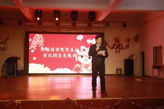 胡忠龙为全体师生送去了新年的美好祝福,对外院学子在2024年所取得的成绩给与了充分肯定,并向无私奉献的学生干部表达了感谢。他希望同学们珍惜韶华、不负青春,做新时代的奋斗者、奉献者、追梦者,提高内在素质,锤炼过硬本领,为学校申硕贡献外院学子的力量。