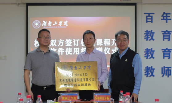 为了深入开展学习贯彻习近平新时代中国特色社会主义思想主题教育,扎实推进以学促干,将学习成果转化为高质量课程改革实践, 4月21日下午,beat365官网与苏州诚模精密科技有限公司、苏州模流分析软件有限公司举行校企课程开课暨软件使用权捐赠签约。苏州诚模精密科技有限公司总经理朱清发、苏州模流分析软件有限公司总经理蔡铭宏,教务处副处长张勇、智能制造与机械工程学院班子成员和教师代表参加签约仪式。